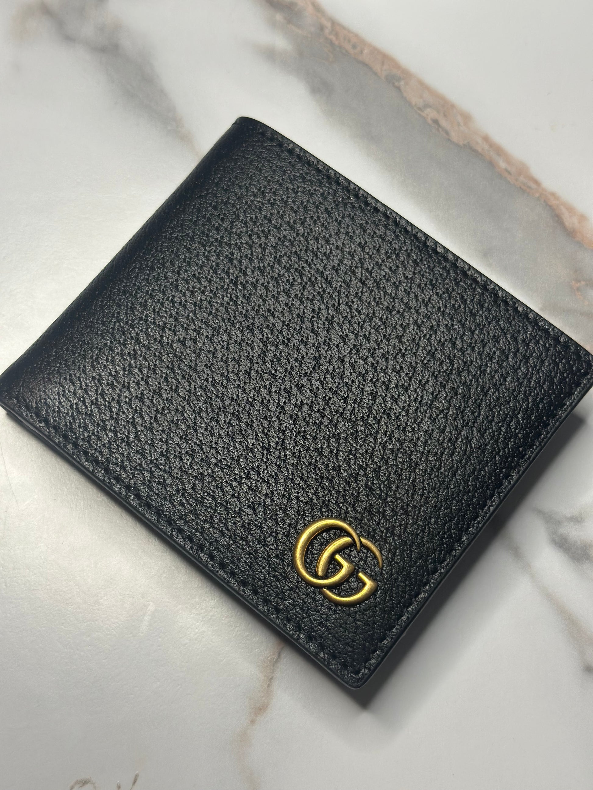 Pre-owned Gucci GG Marmont boar effect leather bi-fold wallet
